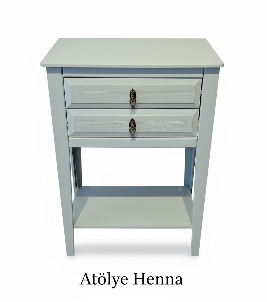Bu özel tasarım komodin, sade çizgileri ve vintage dokusuyla yatak odanıza hem düzen hem de estetik kazandırır. El işçiliğiyle şekillendirilmiş detayları ve zarif renk tonu sayesinde hem klasik hem modern dekorasyonlara uyum sağlar.